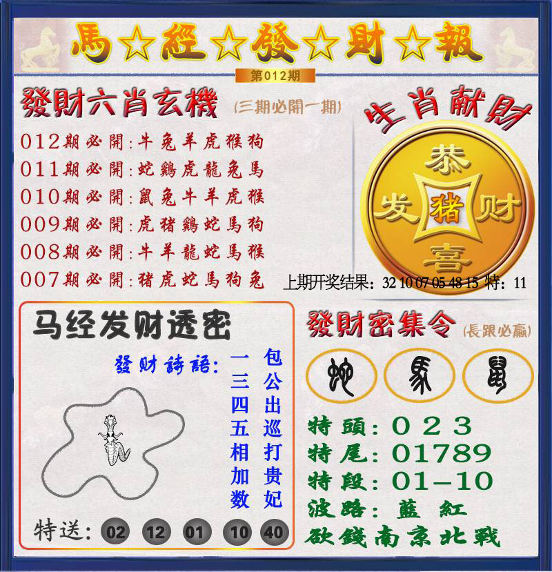 012期: 澳门六合彩红姐彩圖信封【蓝财神报】每期自动更新